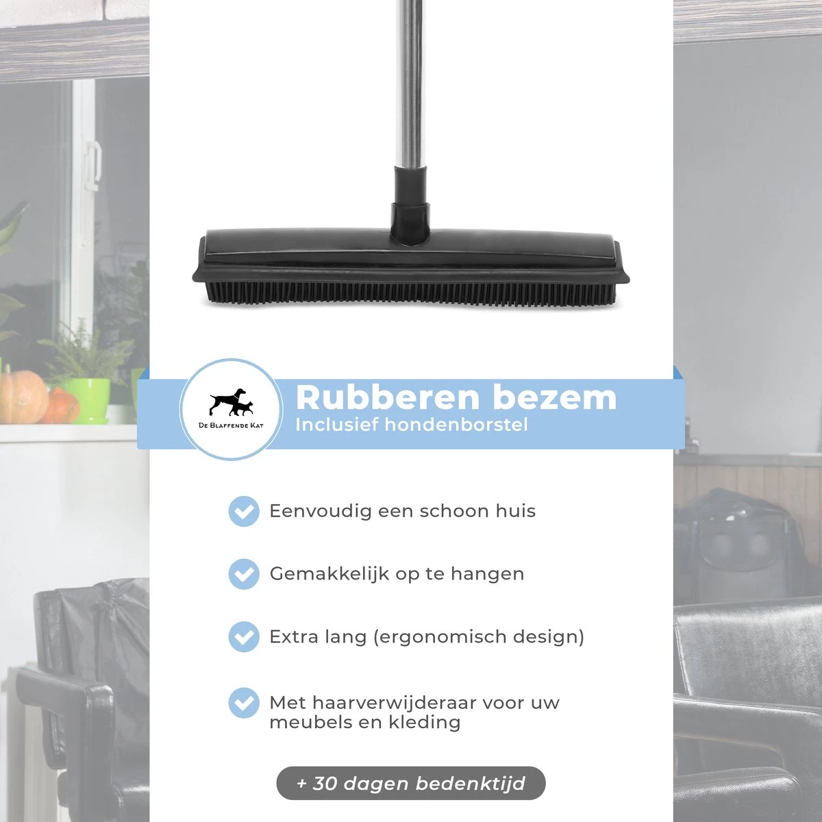 Maak snel en gemakkelijk uw huis schoon met de rubberen bezem van De Blaffende Kat!