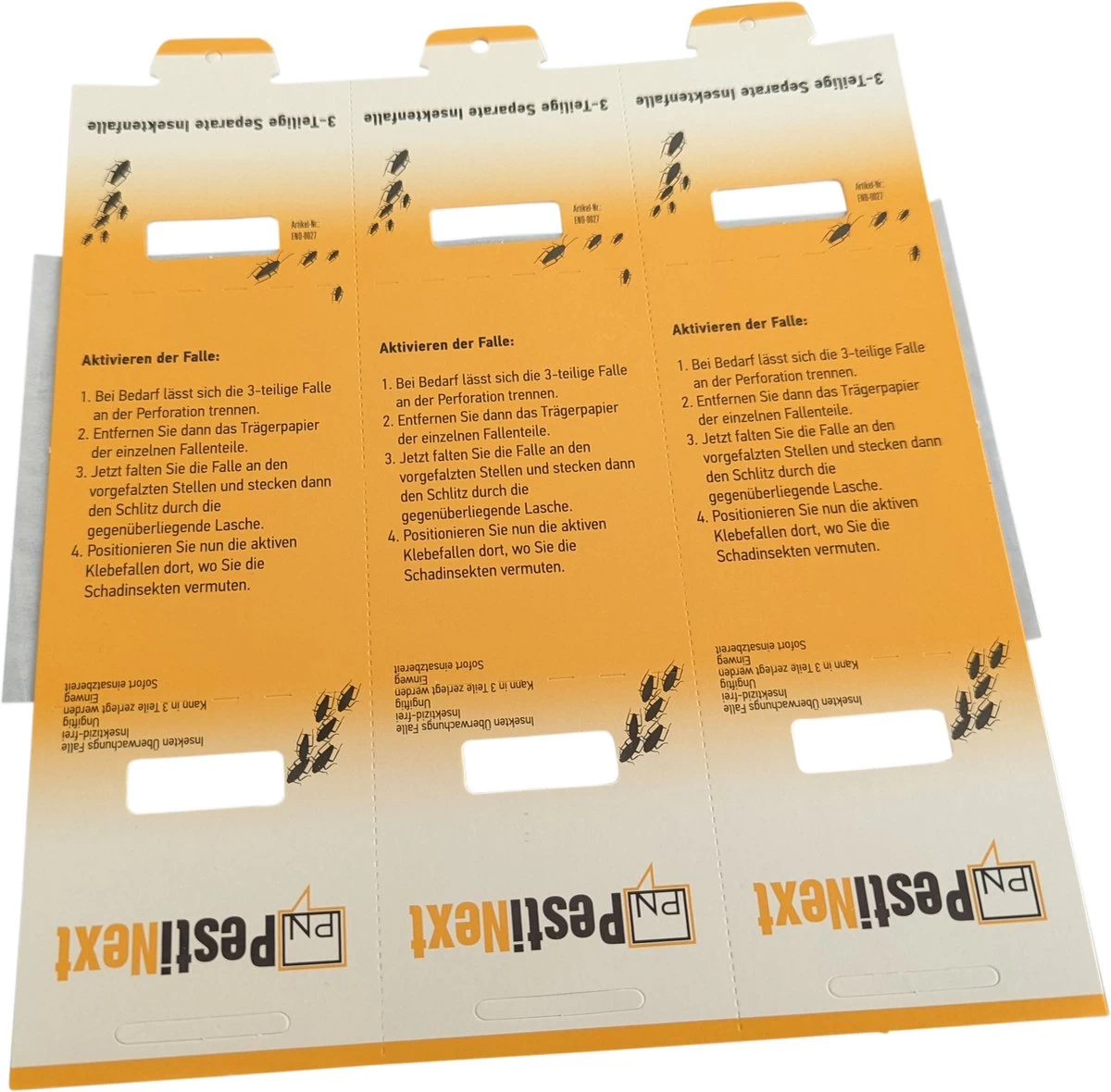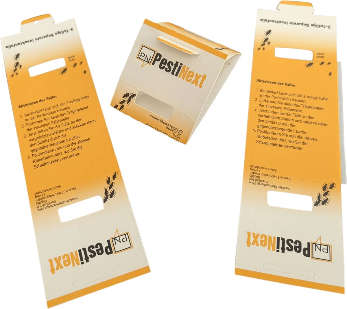 De PestiNext 3-delige gescheiden zilvervisjesval wordt voornamelijk gebruikt voor monitoring en wegvangen van deze irritante insecten. De gescheiden delen van deze zilvervisjesval kunnen op kritieke punten worden geplaatst om de aanwezigheid of het aantal doel insecten te controleren.