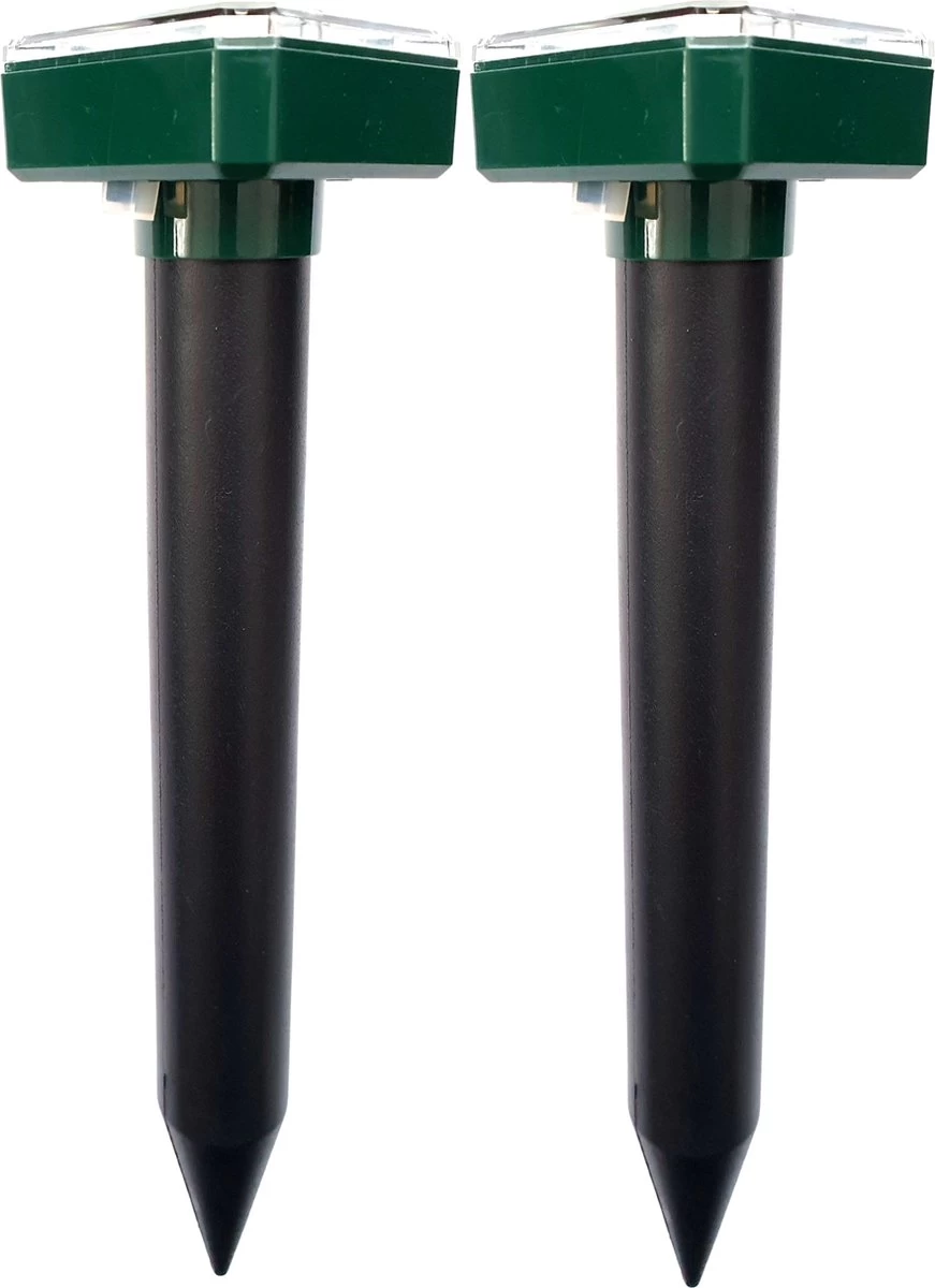 Wanneer je de mollenverjager van Aniway in de grond plaats en aanzet, stuurt deze iedere 20 seconden een sterke trilling met geluidsgolven door de grond. Hierdoor worden mollen en ander ondergronds ongedierte op een diervriendelijke manier verjaagd. Met deze mollenverjager van Aniway kun je een gazon tot wel 100 m2 vrijhouden van ongewenst ongedierte. Deze mollenverjager laadt automatisch op door de ingebouwde zonnepanelen, batterijen zijn dus verleden tijd. Hierdoor kan deze mollenverjager 24 uur per dag zijn werk uitvoeren. De set bestaat uit 2 stuks.