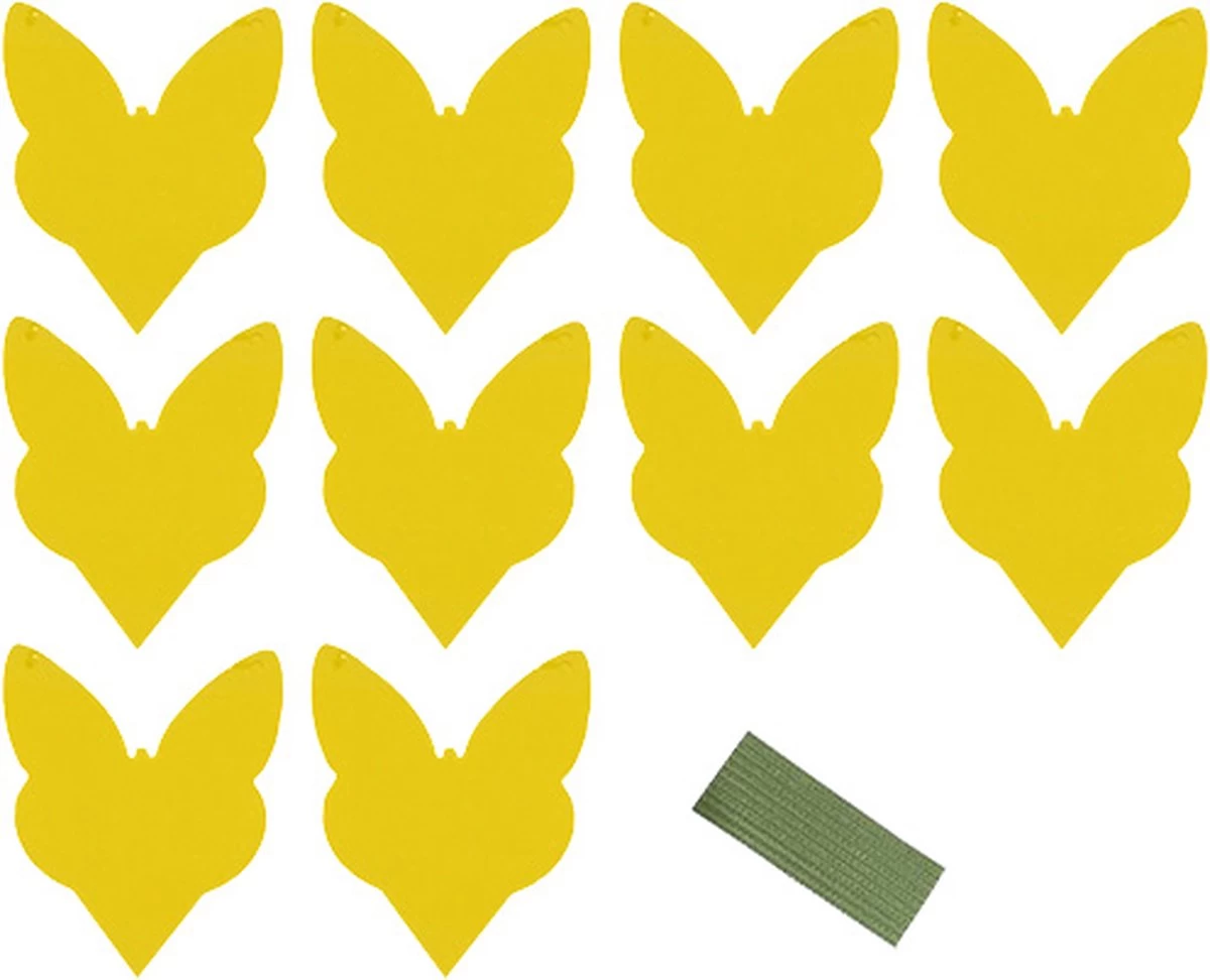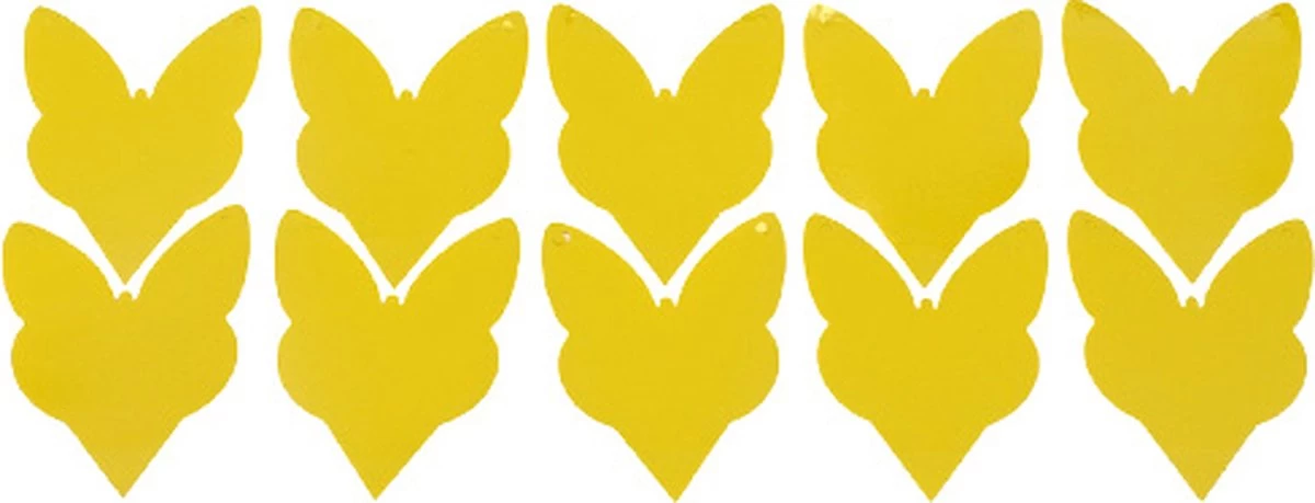 Je ontvangt 10 stuks van deze gele vangplanten in de vorm van een vlinder.