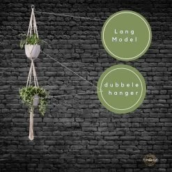 Merkloos Plantenhanger Macramé – Luxe Gevlochten Touw Katoen – 2 Stuks – Plantenpot Ophangen