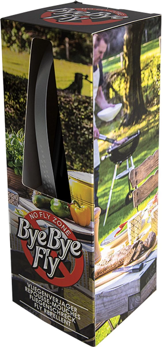 Dankzij holografische nopjes op de vleugels van deze vliegenverjager en de roterende beweging zien vliegen de ByeByeFly als één groot object en bedreiging. Zet hem op tafel tussen het eten en de drankjes of naast de BBQ en de vliegen zullen niet in de buurt komen.