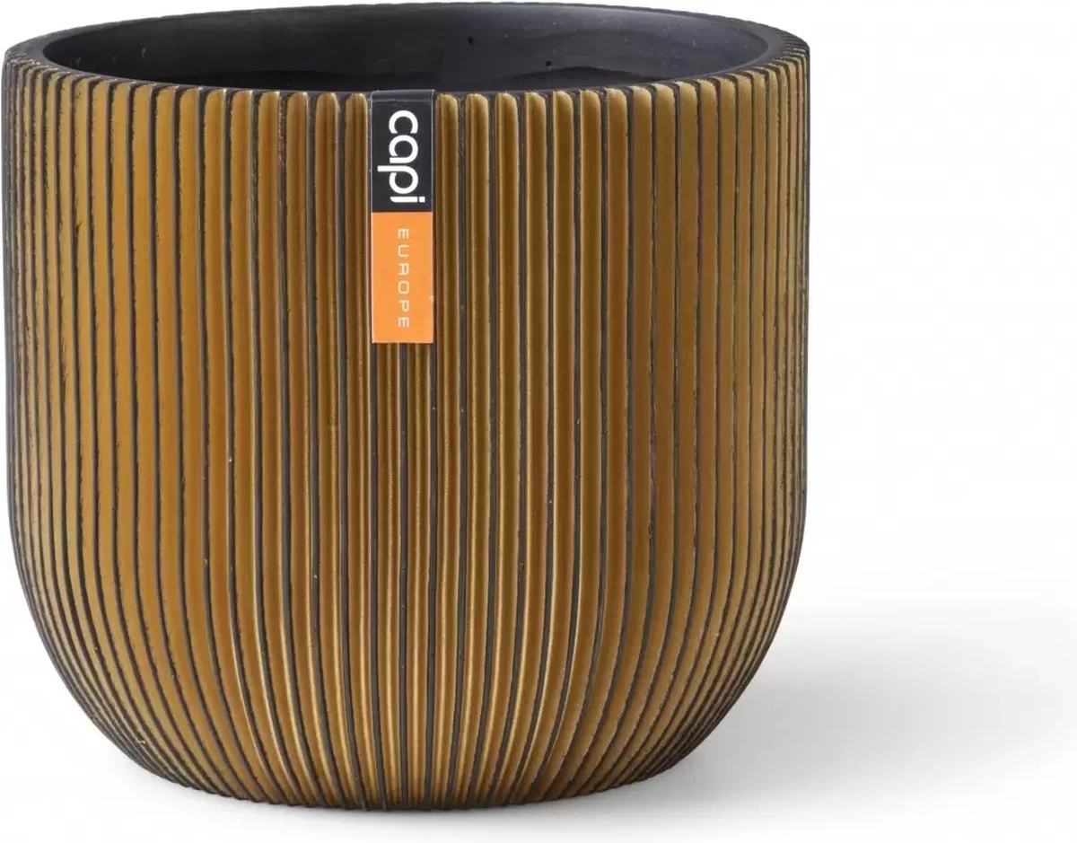 De Groove Gold collectie is, zoals de naam al zegt, geïnspireerd op groeven. Vooral op de verticale groeven in stenen en bergen die zijn ontstaan in de loop van de jaren. Een collectie geïnspireerd op grote veranderingen van de natuur. Een speelse en stoere collectie binnen onze indoor nature-lijn. De Nature Groove collectie is handgemaakt, waardoor elke pot uniek is. De gouden kleur geeft deze textuur een warme, maar ook luxe look. Een echte eyecatcher bij jou thuis.