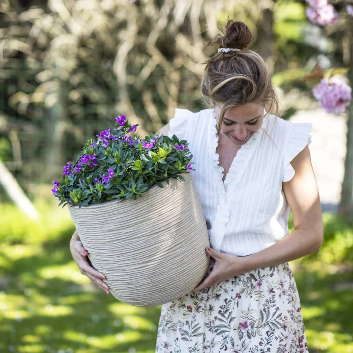 De bloempot is 100% waterdicht en daardoor perfect geschikt om binnen te gebruiken. Wil je de bloempot buiten gebruiken, zorg dan dat je een afwateringsgat van minimaal 25 mm in de bodem boort.