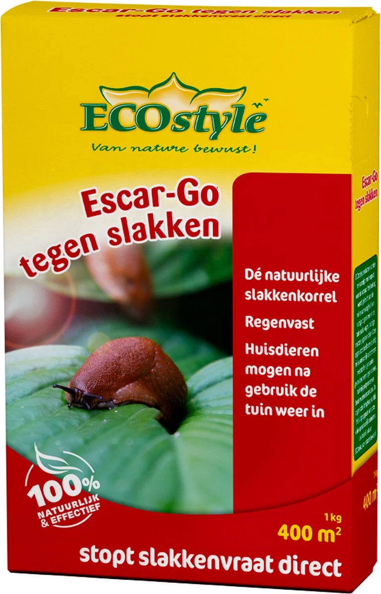 Escar-Go is het product in korrelvorm om slakken te bestrijden. Wanneer de slakken van Escar-Go slakkenkorrels eten, zal dit onmiddellijk tot vraatstop leiden. De slak trekt zich terug in zijn schuilplaats en keert niet meer terug. Je vindt geen slijmerige resten van de slak in de tuin of rondom de planten. Escar-Go toepassen als de jonge planten (slaplanten, hosta’s etc.) net boven de grond uit komen en gedurende het tuinseizoen bij slakkenvraat. Escar-Go is de strooikorrel tegen slakken met de werkzame stof ijzer(III fosfaat. Dit komt van nature in de bodem voor. Na het eten van de slakkenkorrels stoppen de slakken met eten en trekken zich terug in hun schuilplaats waar ze doodgaan. De uitgedroogde resten van de slak worden opgenomen in de ecologische kringloop.