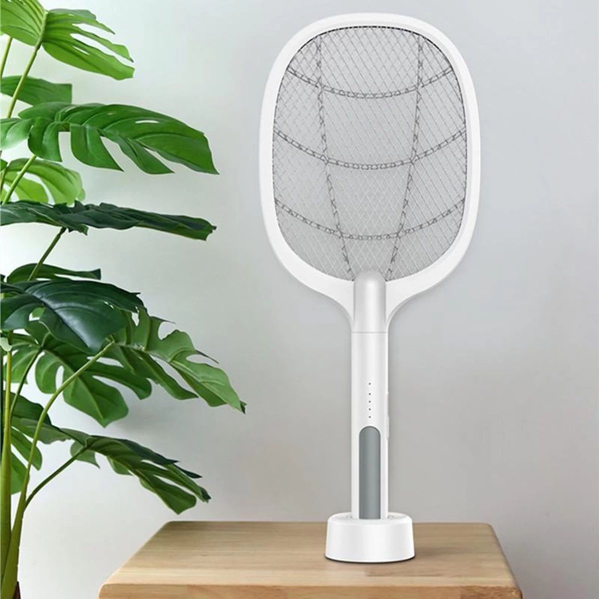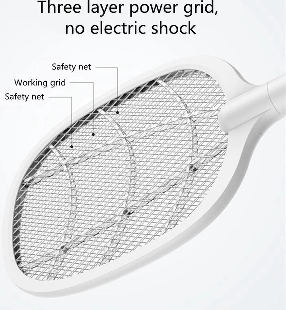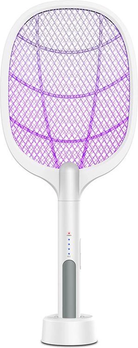 - ntelligente muggenkiller: ingebouwde uv-ledlamp, zet de aan/uit-schakelaar van de elektrische muggenklep in positie ON2 en zet hem vervolgens in het laadstation om als elektrische insectenverdelger te fungeren. Zodra muggen en andere vliegende insecten door het paars licht worden aangetrokken en de elektrische vliegenmepper aanraken, wordt hij onmiddellijk gedood.