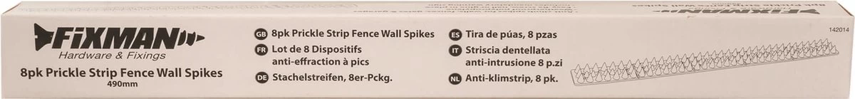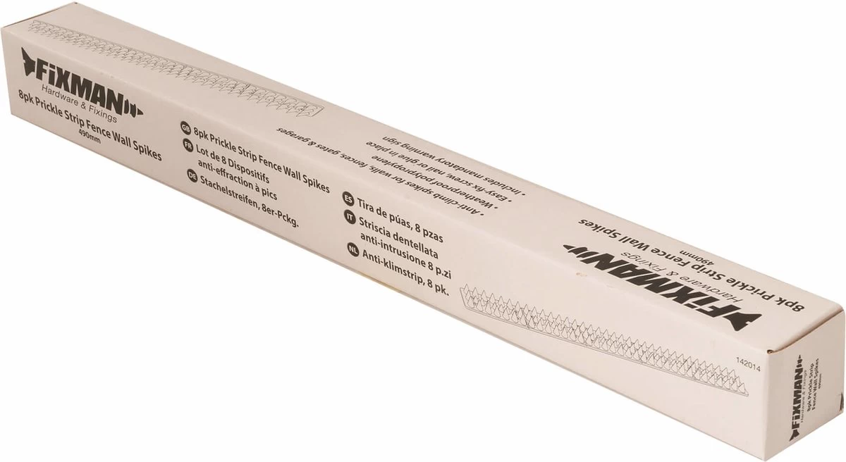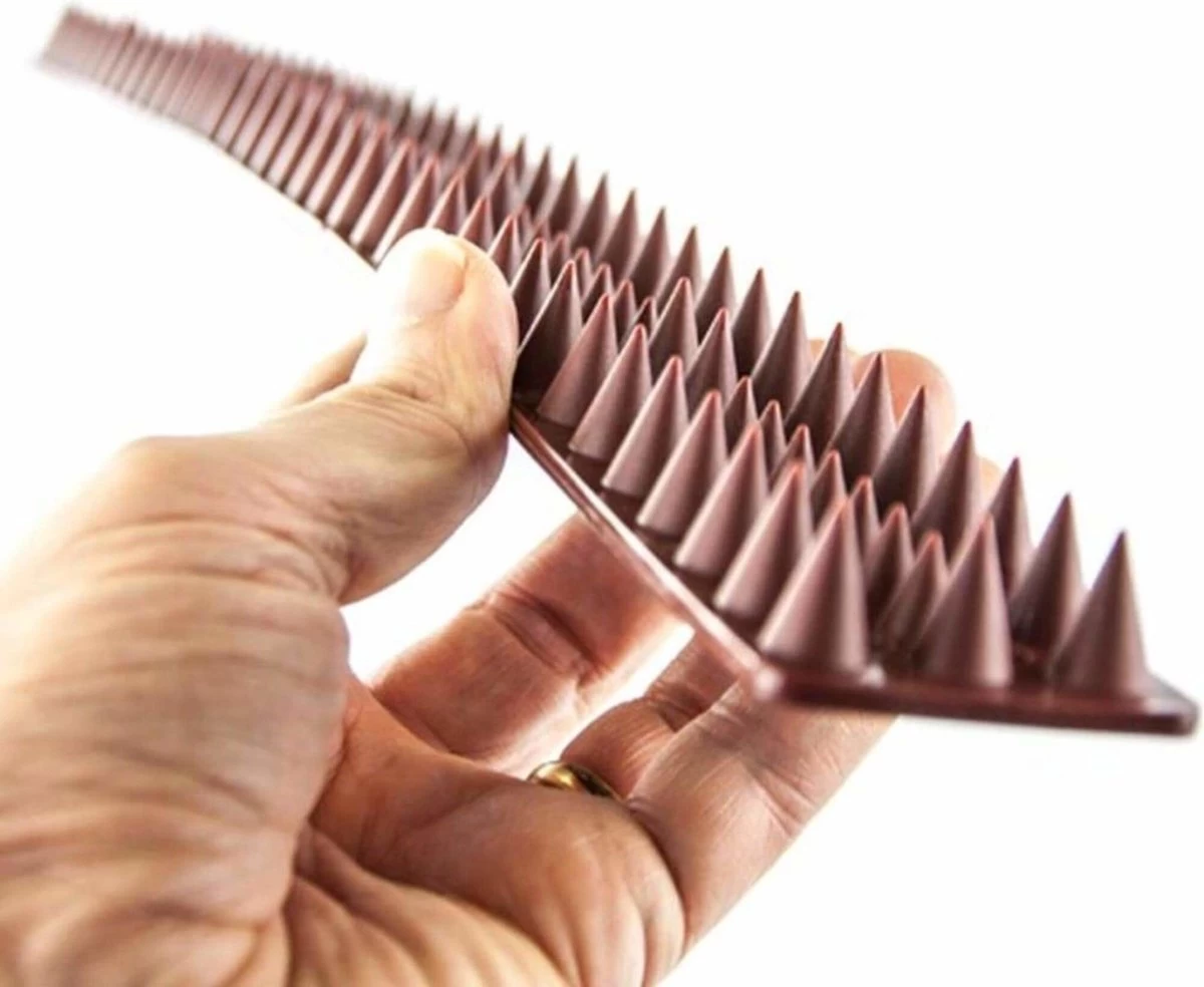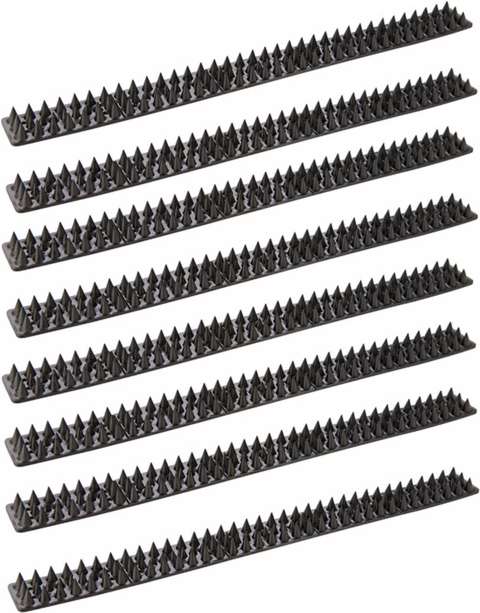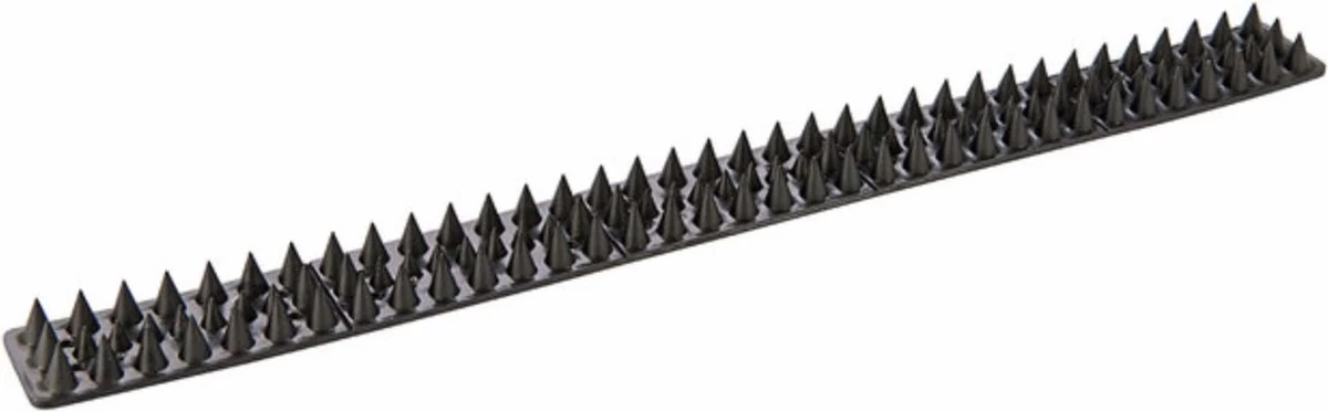 Bevestig de waterbestendige, polypropyleen strips met 3 rijen punten op muren, hekwerk etc. Om inbrekers en ongewenste dieren af te schrikken. Bevestig met spijkers, schroeven of een kleefmiddel. Elke strip kan op maat gebroken te worden voor een fijne pasvorm. Eigenaren dienen tevreden te zijn met het feit dat de strips geen schade toebrengen.
