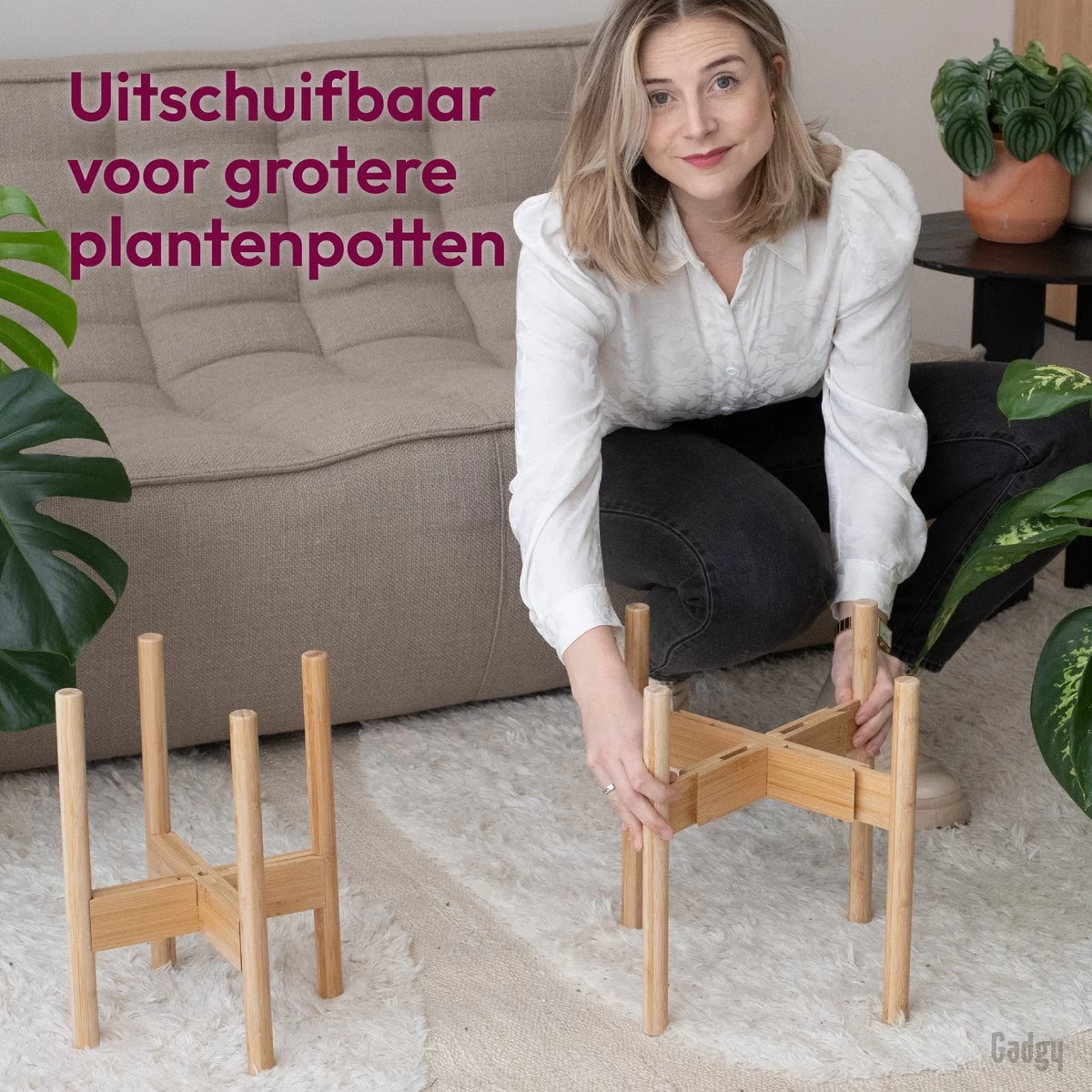 PAST IN IEDERE STIJL – Deze standaards zijn gemaakt van natuurlijk bamboehout. De neutrale kleur past bij elke inrichting en bij je favoriete pot- en plantkleur. Ook zeer geschikt om een mooie grote vaas bloemen op te zetten.