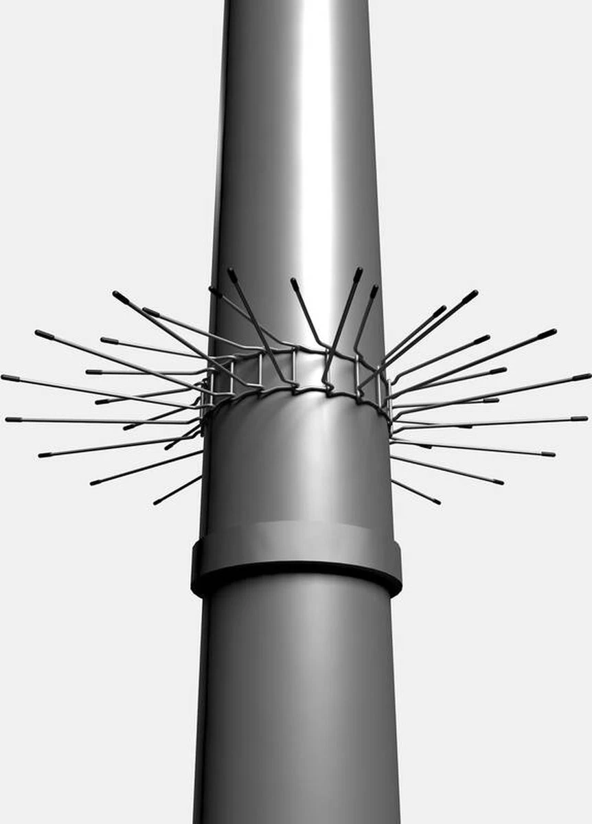 Met zijn lange spikes ziet de regenbuidelriem er weliswaar martiaal uit, maar in principe is hij slechts een klimbarrière die de weg naar boven bemoeilijkt. Bij grotere buisdiameters kan de riem ook met andere sets worden aangevuld.