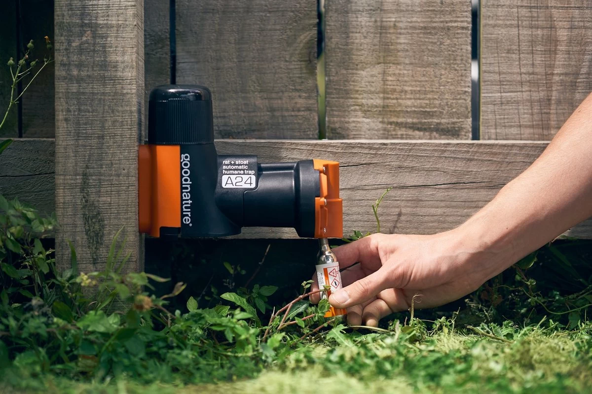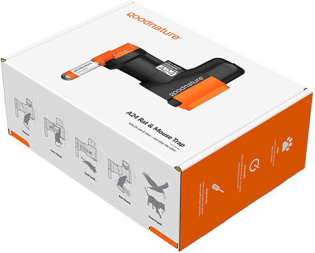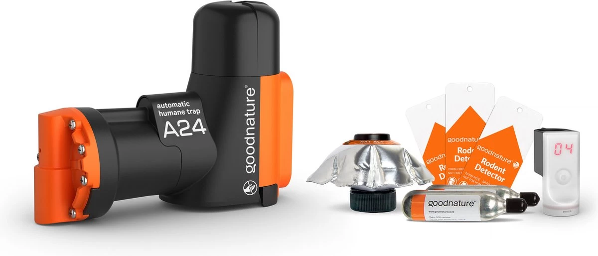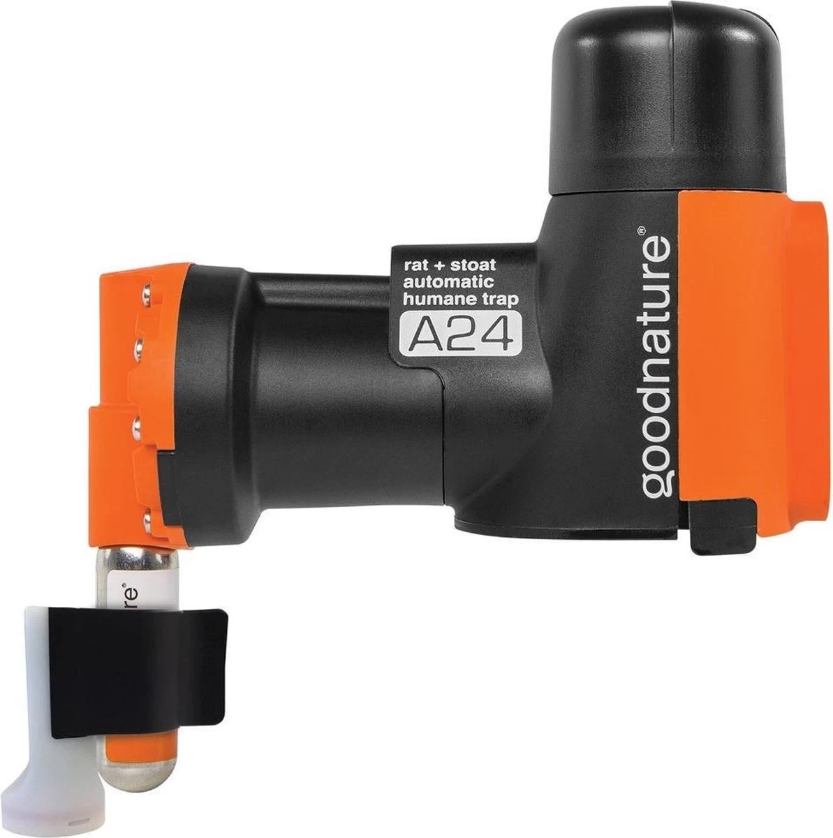 De Goodnature A24 rattenval en muizenval doodt automatisch 24 ratten of muizen -de een na de ander, zonder dat u het CO2 patroon tussentijds moet vervangen. Het maakt gebruik van niet-giftige lokstof en doodt ongedierte op een humane manier.