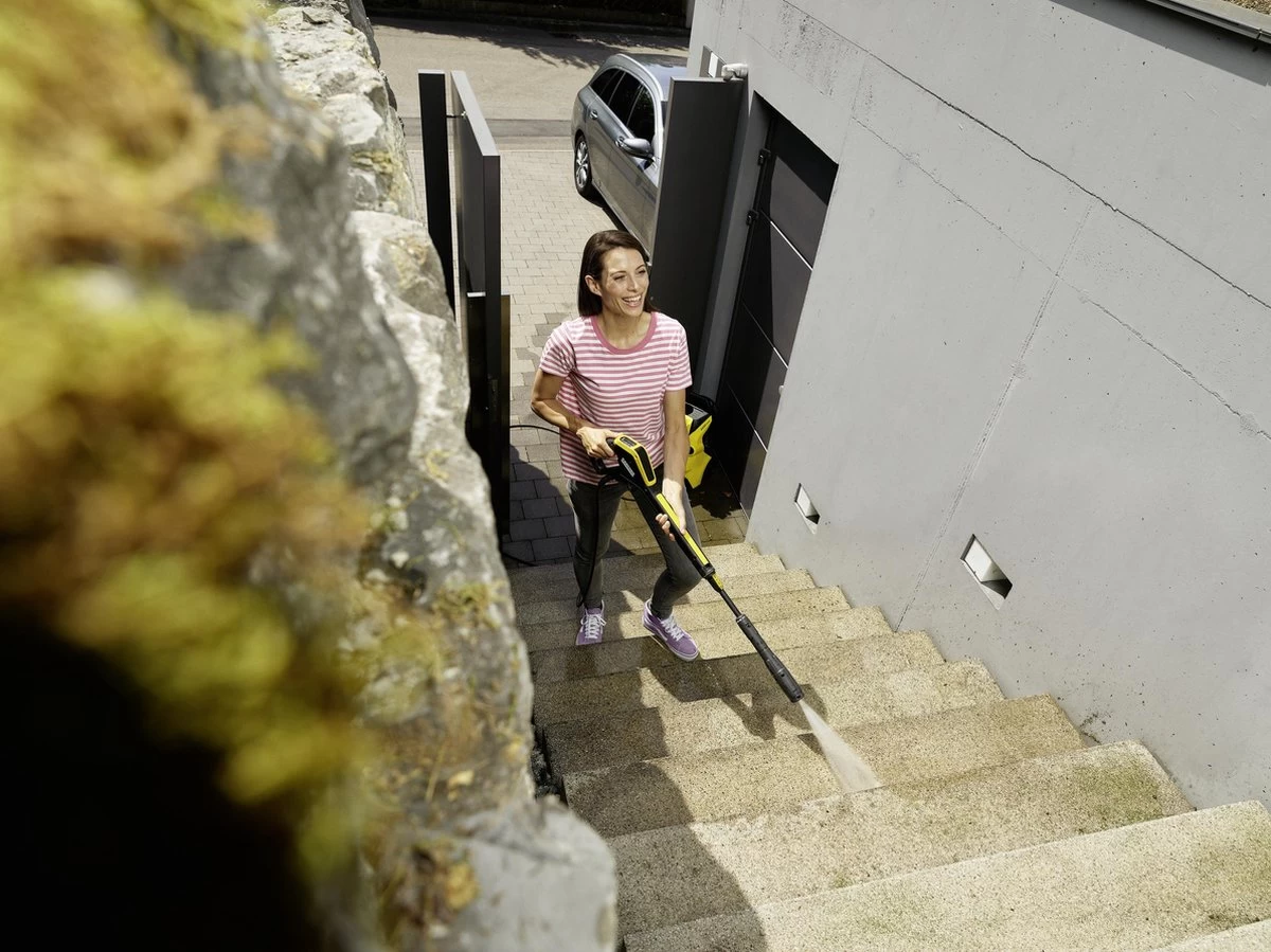 De hogedrukreiniger K 4 Power Control maakt het ongelooflijk eenvoudig om elk oppervlak met de juiste druk te reinigen. En dankzij de Kärcher Home & Garden-app is het ook heel eenvoudig om de juiste druk te vinden: de in de app geïntegreerde toepassingshulp ondersteunt de gebruiker met praktische tips over elke reinigingssituatie en reinigingsobject – voor perfecte reinigingsresultaten. Naast de toepassingshulp biedt de app nog andere handige functies, zoals montagehandleidingen, verzorgings- en onderhoudsinstructies en het Kärcher serviceportaal. Wanneer het juiste drukniveau is gevonden, kan dit eenvoudig worden ingesteld door de spuitlans te draaien en te controleren op het G 160 Q Power Control spuitpistool. De K 4 Power Control maakt ook indruk met het Kärcher Plug ’n’ Clean-reinigingsmiddelsysteem voor moeiteloze wisseling van reinigingsmiddel, een telescopische handgreep voor comfortabel transport en een parkeerpositie voor gemakkelijk toegankelijke accessoires.