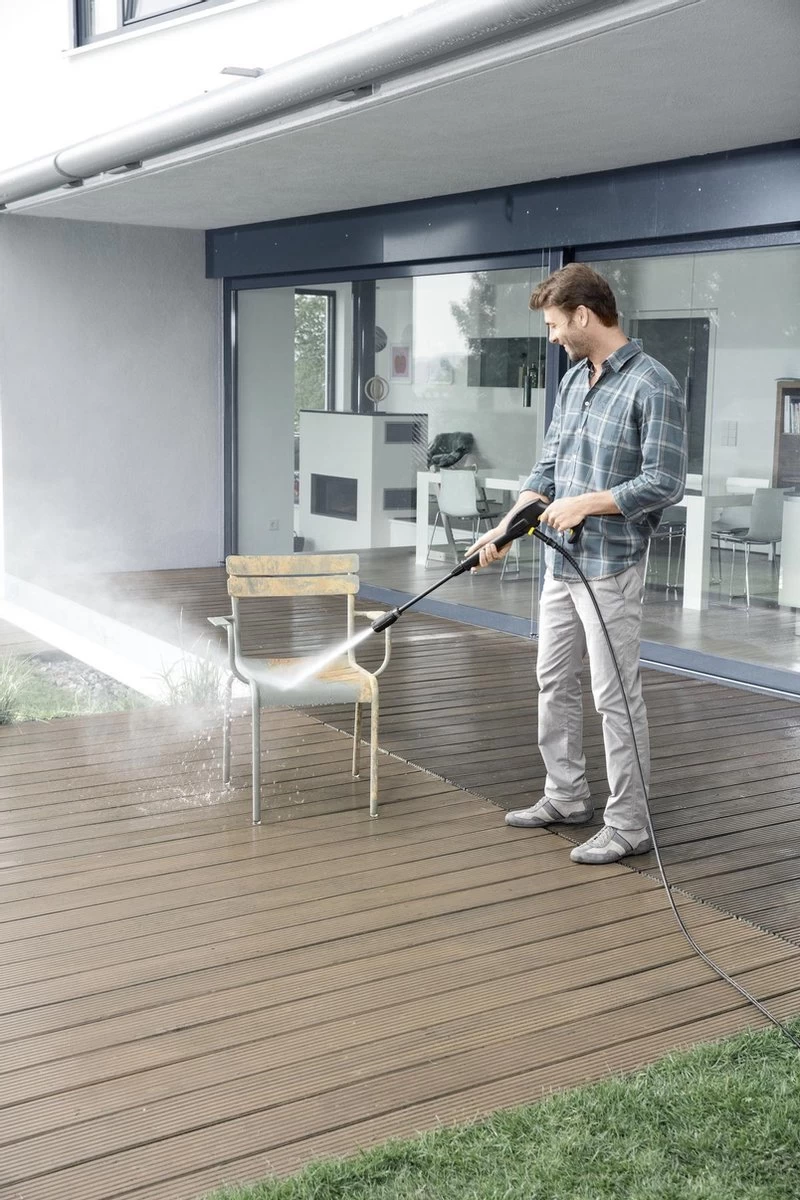 Word schoonmaakexpert met de Kärcher Home & Garden-app: in combinatie met de Kärcher K 2 Power Control hogedrukreiniger behaal je top schoonmaakresultaten. De app bevat de behulpzame toepassingshulp, die de gebruiker bij elke schoonmaaktaak ondersteunt met praktische tips en trucs. De app biedt ook een uitgebreide ondersteuning met informatie over het apparaat, de toepassingen en het Kärcher-serviceportaal. De hogedrukreiniger is voorzien van een hogedrukpistool en 2 spuitlansen met Quick Connect adapter. Het drukniveau kan direct op de Click Vario Power spuitlans worden ingesteld – voor maximale controle bij elke reinigingstaak. Verder beschikt het apparaat over een in hoogte verstelbare telescoopsteel voor comfortabel transport en opslag, een zuigslang voor moeiteloos aanbrengen van reinigingsmiddelen, praktische houders voor accessoires, hogedrukpistool en kabel en een 5 meter lange hogedrukslang.