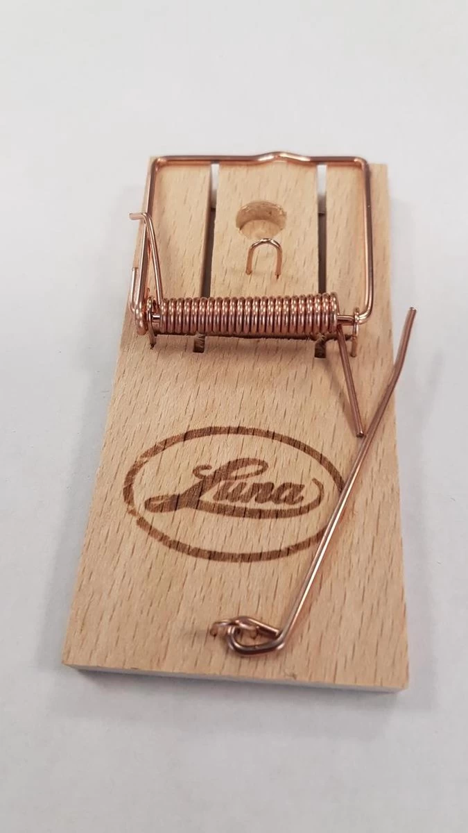 Tradionele houten muizenval, zeer effectief in het bestrijden van muizen. Het is ideale manier om knaagdieren te bestrijden voor diegene die geen vergif wil gebruiken.