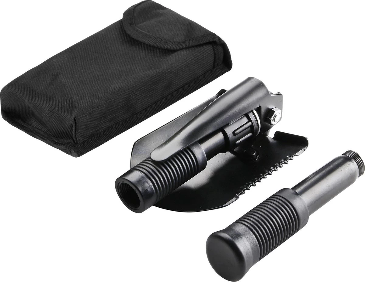 De Macgyver compacte pioniersschep en pikhouweelset is een handige tool met echte aanpakkers. Eenvoudig mee te nemen in een handige etui van 17cm met riemlus. Kamperen, scoutring, strand of gewoon voor in de auto? Voor de buitenliefhebber schep je zand, sneeuw, bagger, steentjes of andere grondstof eenvoudig weg. Zagen doe je met een 6cm scherpe rand aan de zijkant van de schep. Snijden? Ook geen enkel probleem. Touw of blikes zijn binnen enkele seconden open en door.