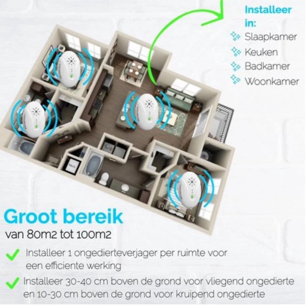 Maar maak gebruik van een milieuvriendelijke methode die onschadelijk is voor mensen en huisdieren. Ons apparaat gaat de ongedierte verjagen met behulp van geluid dat geproduceerd wordt door ons ultrasoon systeem. De verjager zendt een bepaalde frequentie uit waar de doelsoorten niet van houden. Deze frequentie is dus specifiek aangepast op de diersoort voor een optimaal verjagend effect. Voor mensen is deze frequentie niet te horen, maar voor het ongedierte is dit een zeer irritante frequentie. De verjager verstoort het natuurlijk gedrag en de communicatie van de ongedierte. Op deze manier wordt de omgeving als onprettig ervaren en zullen de dieren ergens anders huisvesting gaan zoeken