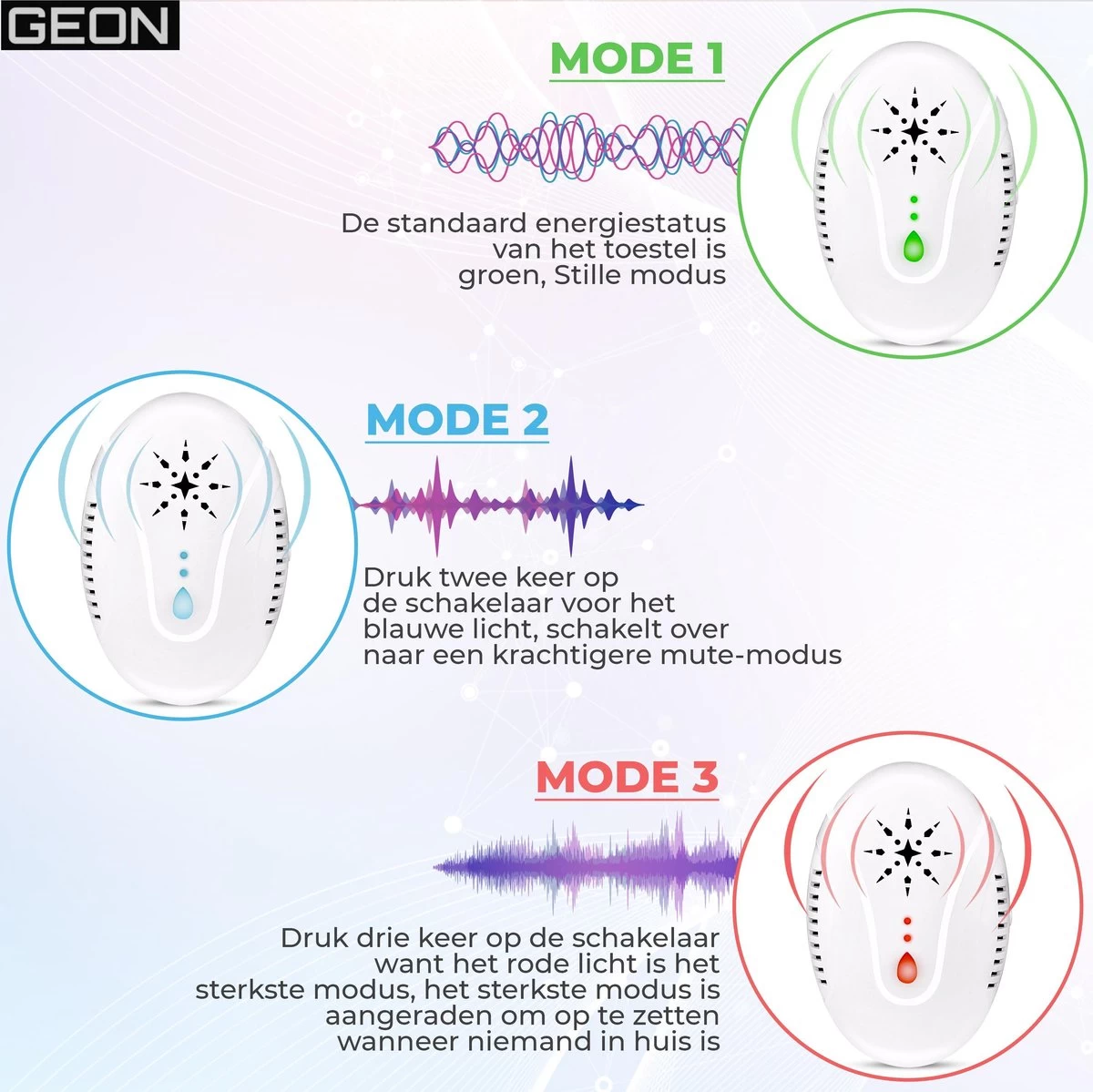 - Het apparaat heeft een bereik van 80 m² tot 100m² (afhankelijk van hoe open de ruimte is). De effectiviteit kan echter gevoelig verhoogd worden door in meerdere ruimtes een verjager te plaatsen. Je kan het instellen in 3 verschillende standen, gaande van een zachte aanpak naar een krachtigere aanpak in functie van de overlast en de snelheid waarmee je de ongedierte wilt verwijderen. Doordat de frequentie varieert kunnen dieren niet aan het geluid wennen en als het ware resistent worden, zo blijf je de ongedierte verjagen.