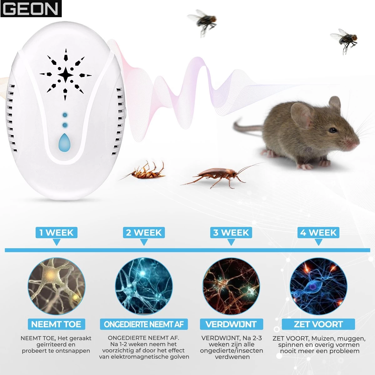 Het systeem is effectief op muizen, ratten, kakkerlakken, muggen, insecten, mieren, etc..