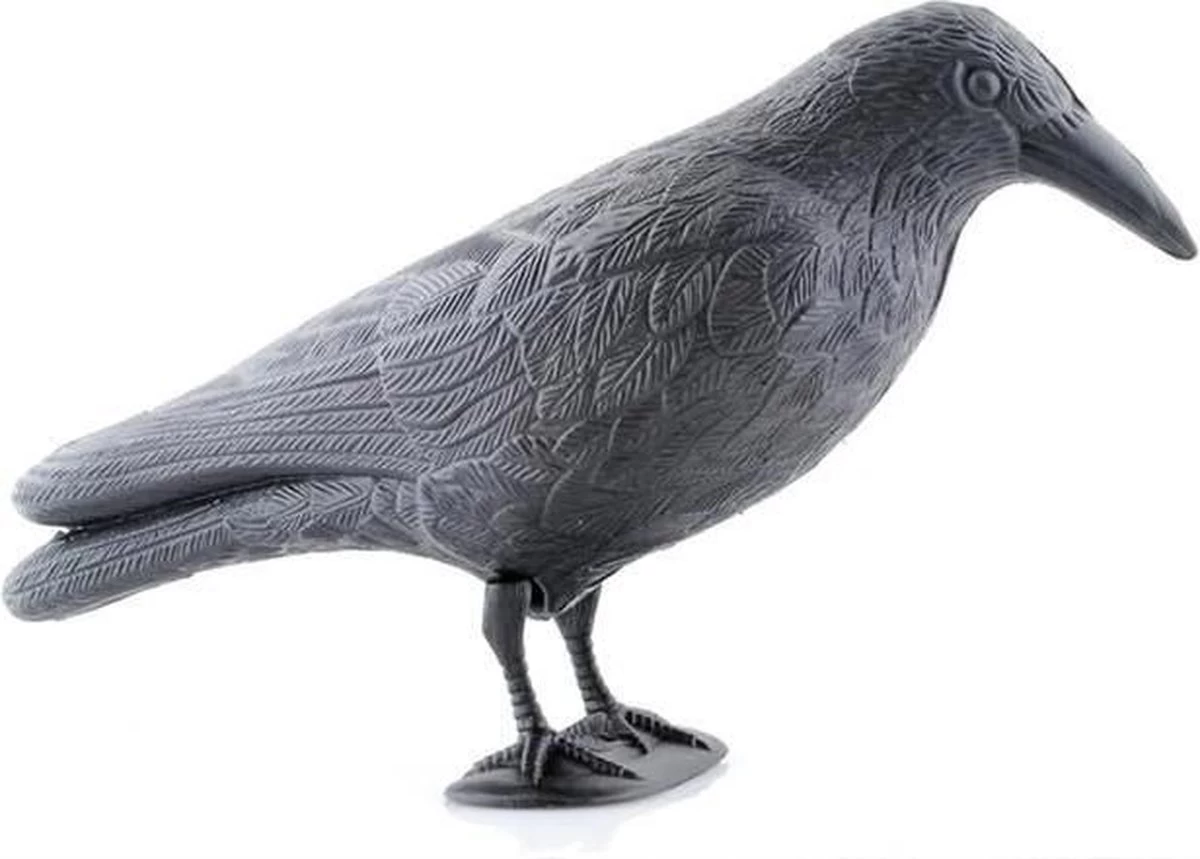 Deze levensechter vogelverschrikker kraai is de meest vreedzame, diervriendelijke en decoratieve manier om verlost te worden van duiven die je balkon of terras bevuilen. De kraai is weerbestendig en kan zowel staand geplaatst worden als worden opgehangen. Ook zeer geschikt ter decoratie van uw tuin of balkon. Geleverd per set van 3 stuks.
