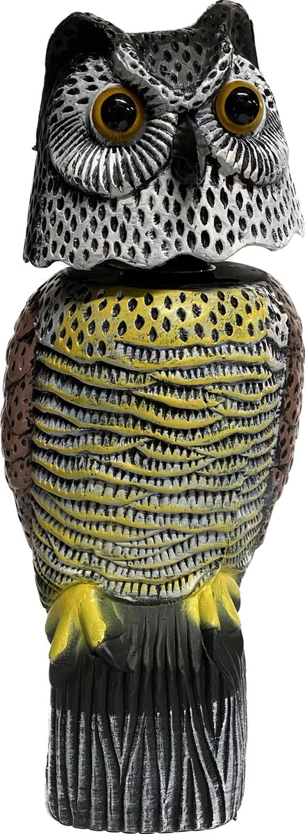 Levensechte kunststof uil met bewegende kop en reflecterende ogen als ongedierte en vogelverschrikker.