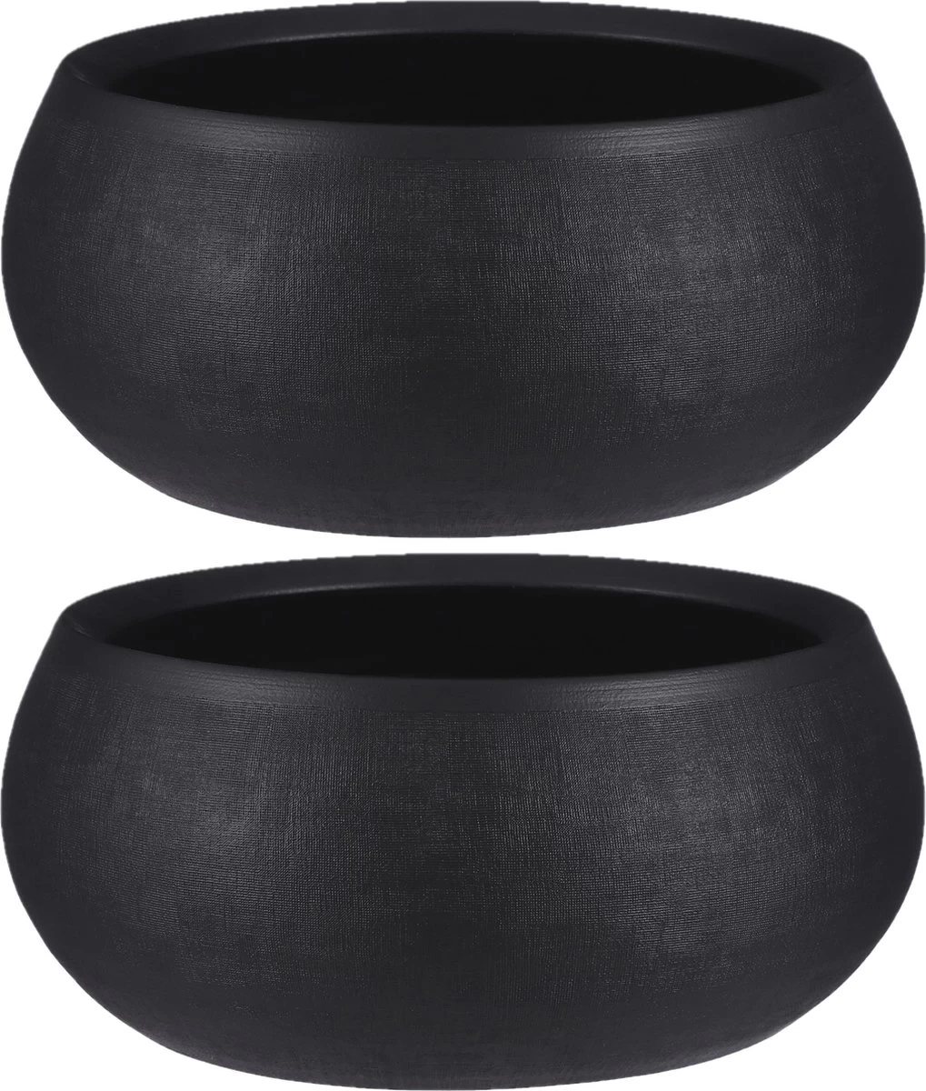 Bloempot schaal in de kleur mat zwart gemaakt van keramiek voor een kamerplant – H14 x D34 cm. Deze ronde bloempot uit de Boule serie met mooie afwerking is een bloempot/plantenpot basic voor in elke huiskamer. Gemaakt van terracotta/keramiek. Binnen gebruik. Diameter: 34 cm. Hoogte: 14 cm.