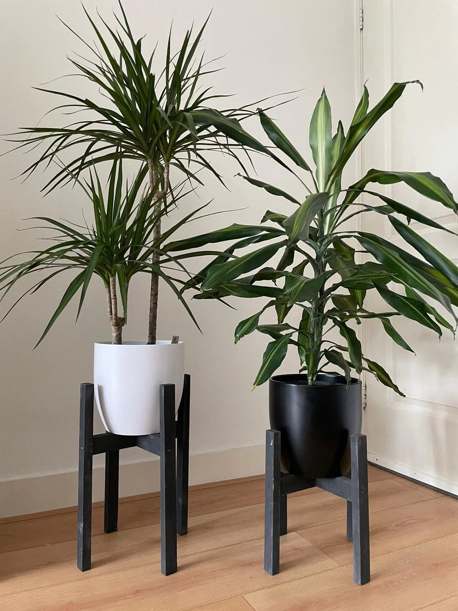 De plantenstandaard is gemaakt van 100 procent hout. Het hout is tot in detail afgewerkt, het mat zwarte lak geeft een klassieke, donkergrijs look aan de standaarden. Stevigheid en duurzaamheid gegarandeerd!