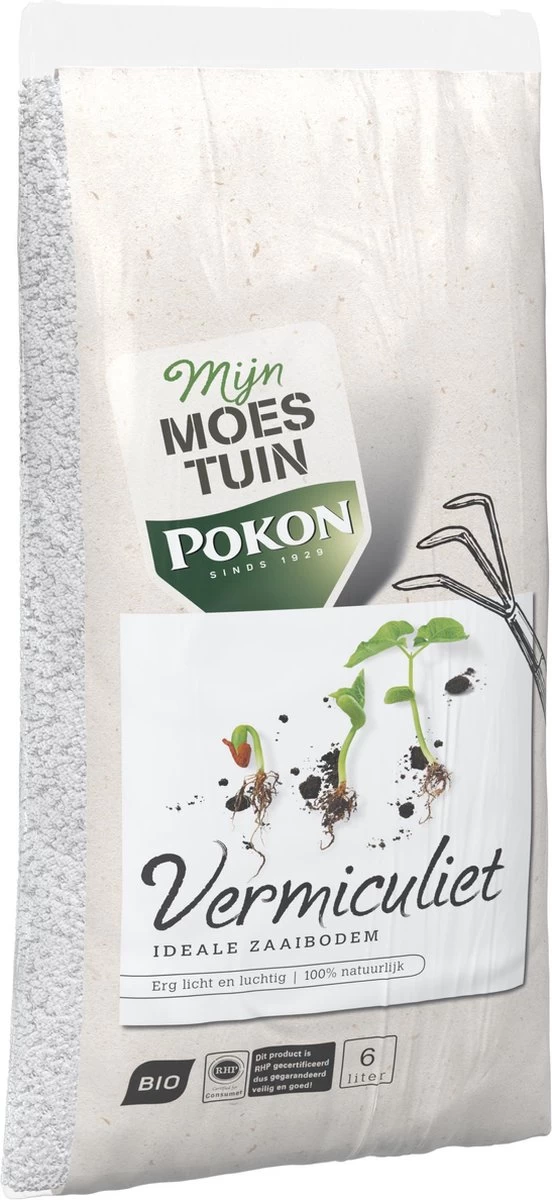 Pokon Bio Vermiculiet is een in de natuur voorkomend gesteente dat bij hoge temperaturen wordt gepoft tot dit hoogwaardige eindproduct. Deze organische stof is perfect om te gebruiken als zaaibodem voor planten, maar ook bloembollen! Het is een licht materiaal wat het tot een zaaigrond maakt waarin zaden goed ontkiemen en water en voeding worden gebufferd.