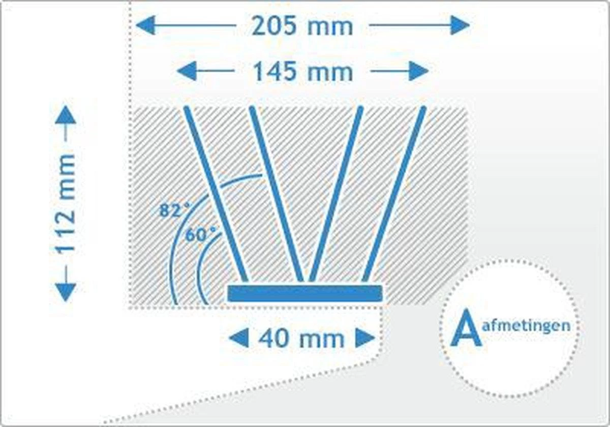 - Netto breedte van de basisstrip: 40 mm onder / 145 mm boven