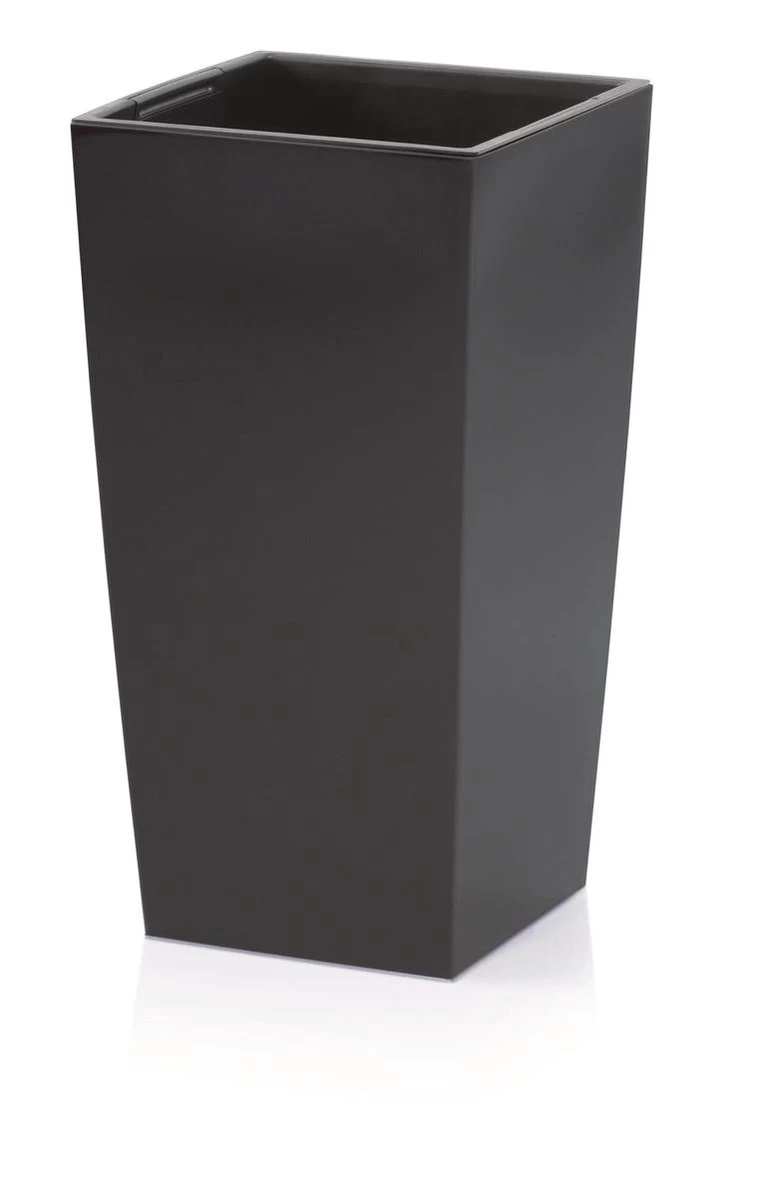 Bloempot/plantenpot met binnenpot. Hoge vierkante sierlijke bloempot met een matte uitstraling. Serie: Urbi Square. Formaat: lengte: ca 32,5 cm. Breedte: ca 32,5 cm. Hoogte: ca 61 cm. Inhoud: 21 liter met binnenpot, 49 liter zonder binnenpot. Materiaal: kras en stootvast kunststof. Zonder afwateringsgaten. Geschikt voor binnen en buiten gebruik.