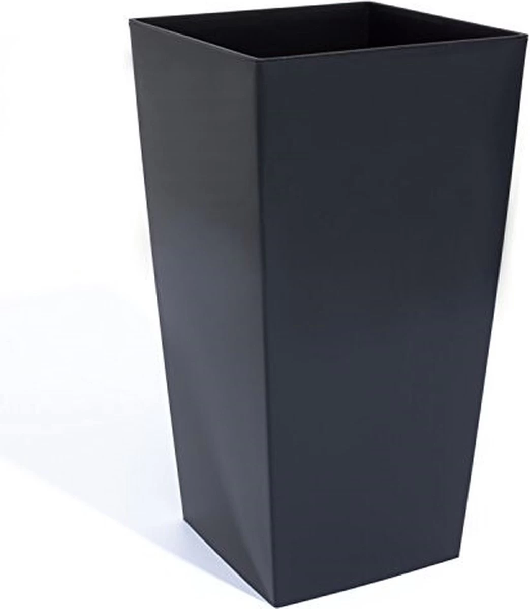 Bloempot/plantenpot met binnenpot. Hoge vierkante sierlijke bloempot met een matte uitstraling. Serie: Urbi Square. Formaat: lengte: ca 40 cm. Breedte: ca 40 cm. Hoogte: ca 75 cm. Inhoud: 37 liter met binnenpot, 91,5 liter zonder binnenpot. Materiaal: kras en stootvast kunststof. Zonder afwateringsgaten. Geschikt voor binnen en buiten gebruik.