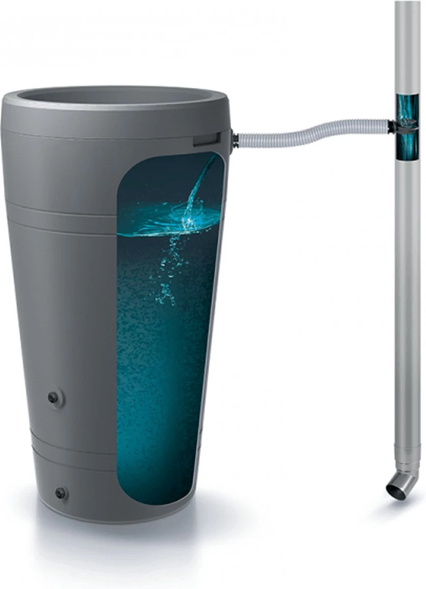 Met dit systeem verbind je de regenton rechtstreeks met de regenpijp om het regenwater van op het dak in de ton te verzamelen. Met bijgeleverde klokboor (42 mm) boor je het gepaste gat in de regenpijp en in de regenton.