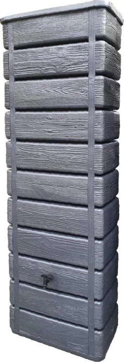 Met deze regenton met een capaciteit van 300L kunt u regenwater opvangen voor het onderhoud van uw tuin. Zodra de muurtank vol is, kunt u deze met het meegeleverde deksel sluiten. Het is mogelijk om de regenton aan te sluiten op de dakgoot met de bijgeleverde aansluiting. De kraan maakt het eenvoudig om het benodigde water te doseren. Zijn blaasgegoten imitatie hout-look geeft een zeer natuurlijke uitstraling aan uw tuin.