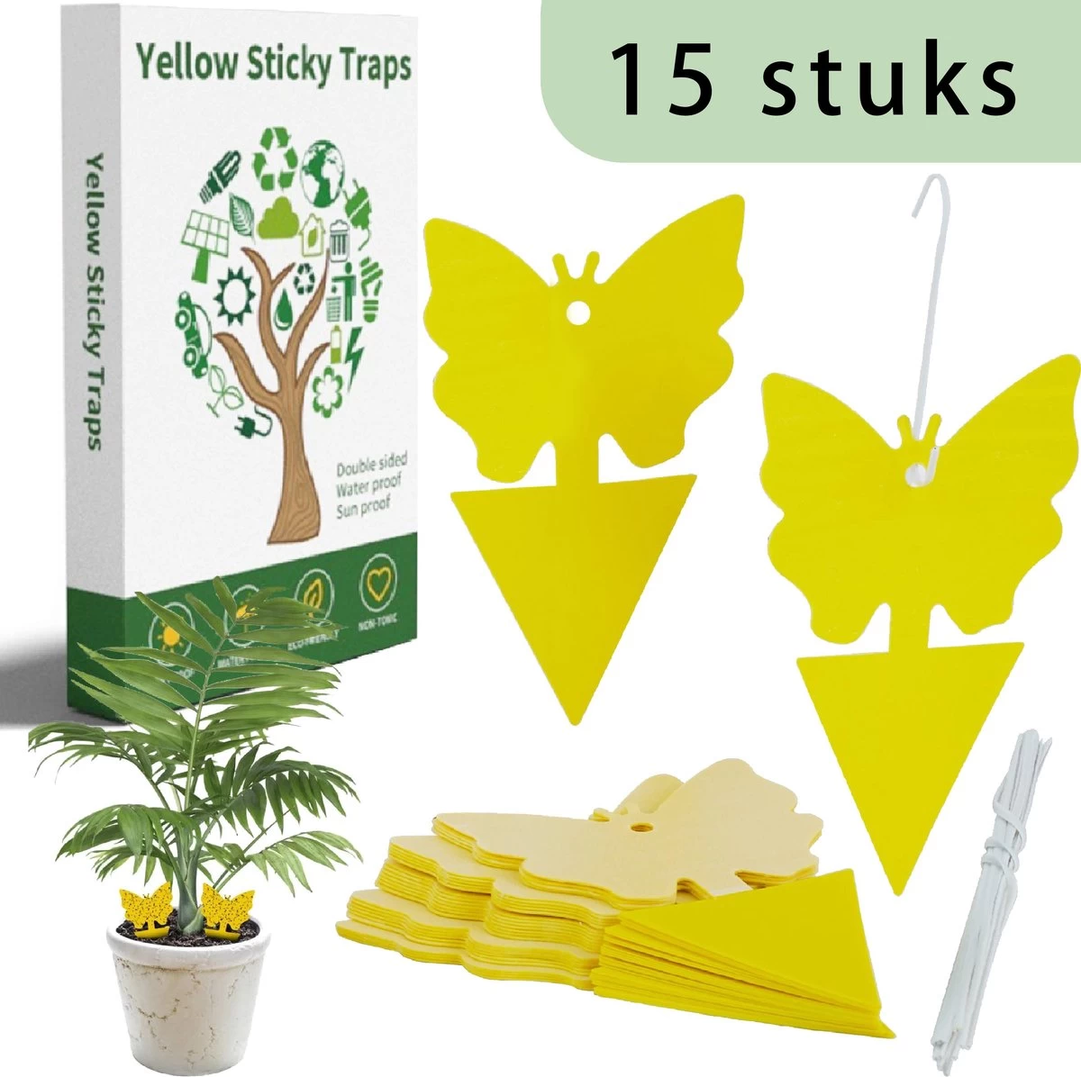 Je ontvangt 15 dubbelzijdig klevende lijmvallen. Deze plaats je in je plantenpot en de felle kleur trekt rouwvliegen aan. Ze blijven hier vervolgens aan plakken, komen niet meer los en leggen dus geen nieuwe eitjes. Het is daarmee een geweldig en veilig alternatief voor aaltjes of nematoden.