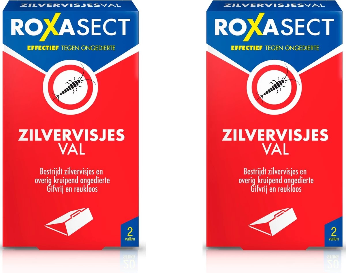 Met de Roxasect Zilvervisjesval pak je deze zilvervisjes effectief aan. De Roxasect Zilvervisjesval bootst een schuilplaats voor zilvervisjes na. Wanneer de zilvervisjes in de val komen dan blijven ze vastkleven op de lijmlaag van de val.