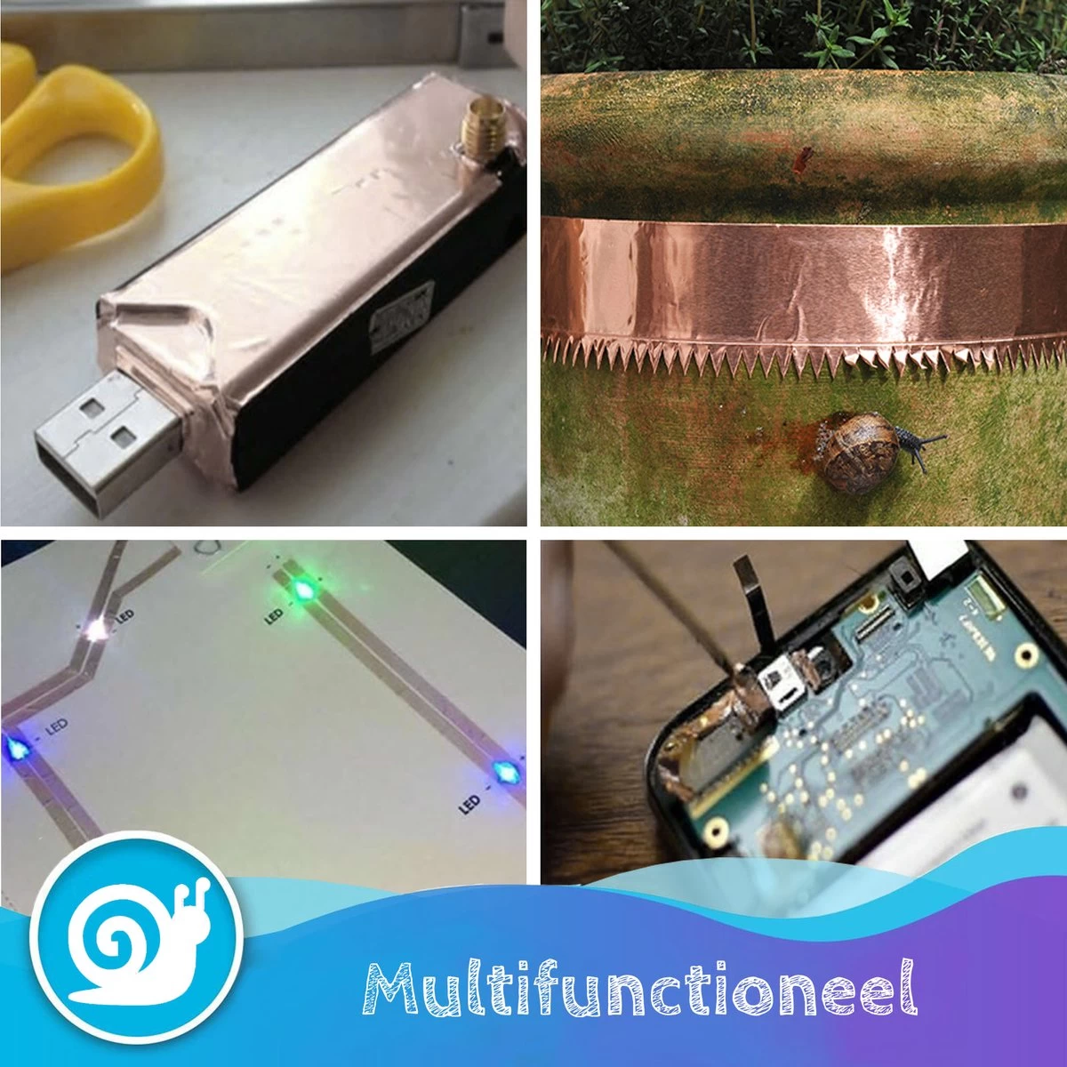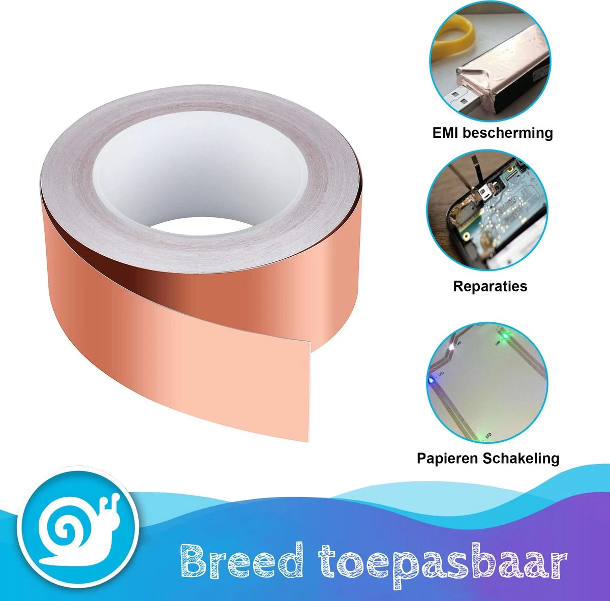 De kopertape kan worden gebruikt in alle soorten transformatoren, bij mobiele telefoons, computers, PDA’s, PDP’s, LCD-monitoren, notebooks, kopieerapparaten en vele andere elektronische producten. Ook voor doe-het-zelf projecten en als anti-slakken middel is het extreem praktisch.