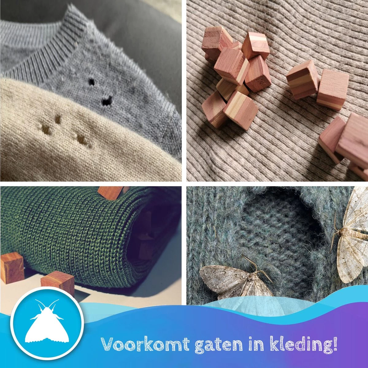 Wil jij ook af van die gaten in je kleding? Vind jij het ook zonde om telkens weer kleding weg te moeten gooien omdat motten / insecten eraan geknabbeld hebben? Wil jij ook af van vieze geuren en schimmel door het hele huis? Wacht dan niet langer en koop het cederhout pakket, tegen motten / insecten, van Summer Spark.
