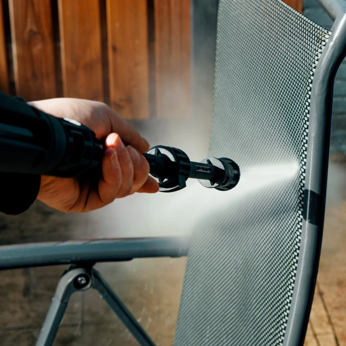 - Automatisch start/stop systeem. De hogedrukreiniger gaat automatisch aan of uit als je de spuitpistool aan of uit zet.