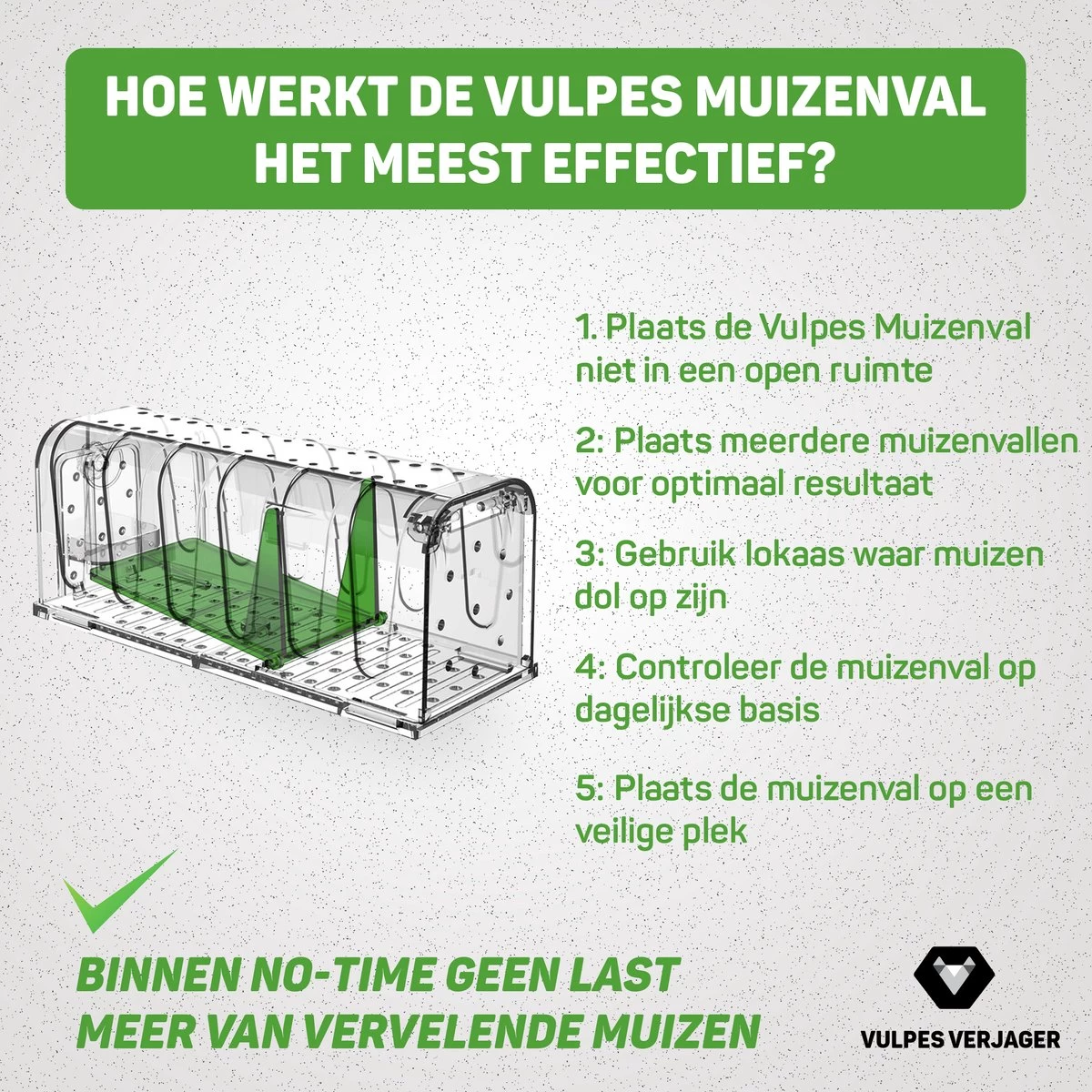 De muizenval van Vulpes Verjager® is dus een veilige, diervriendelijke en bewuste oplossing voor je probleem.
